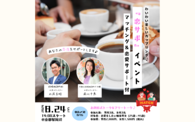 こんにちは。 たくさんの仲良し夫婦がうまれる千乃鶴👩👨✨ 【年下男性×年上女性】を応援! モットーは、「逆算で楽しく婚活」♪ 婚活カウンセラーの前川千恵です👩 今回は恋活イベント(恋サポ)のご案内です✨ & … 続きを読む <恋活イベント>新しいタイプの 👩❤️👨マッチングイベント『恋サポ』恋愛サポート付き♪/参加者募集!